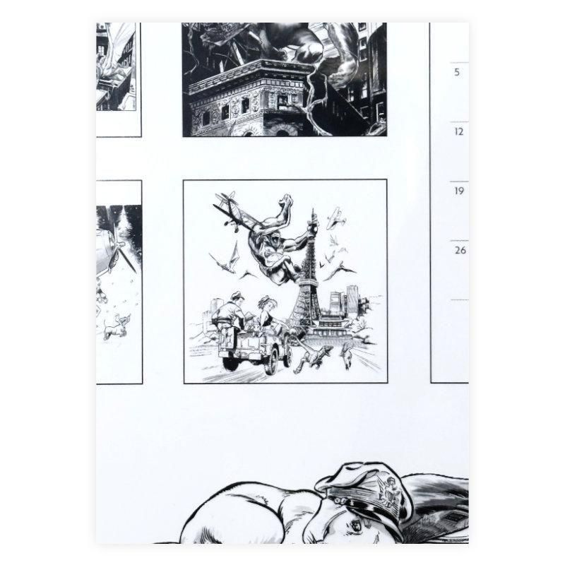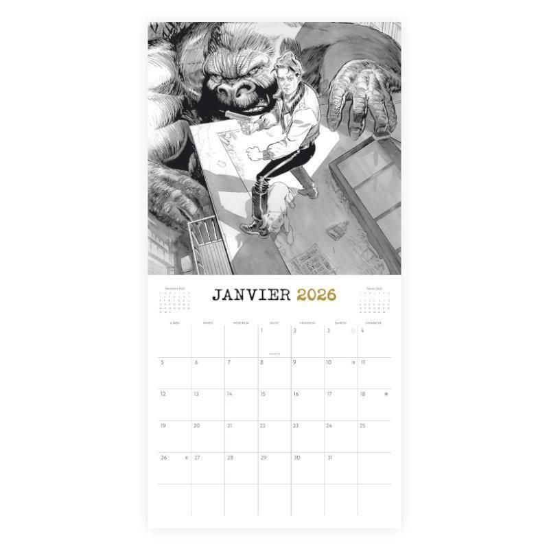 フランスの作家でイラストレーターのオーレリアン・モラが手掛ける、レトロ・フューチャーな雰囲気を持つバンドデシネシリーズ、「Kong Crew(コング・クルー)」の世界観で描かれた2026年版カレンダーです。