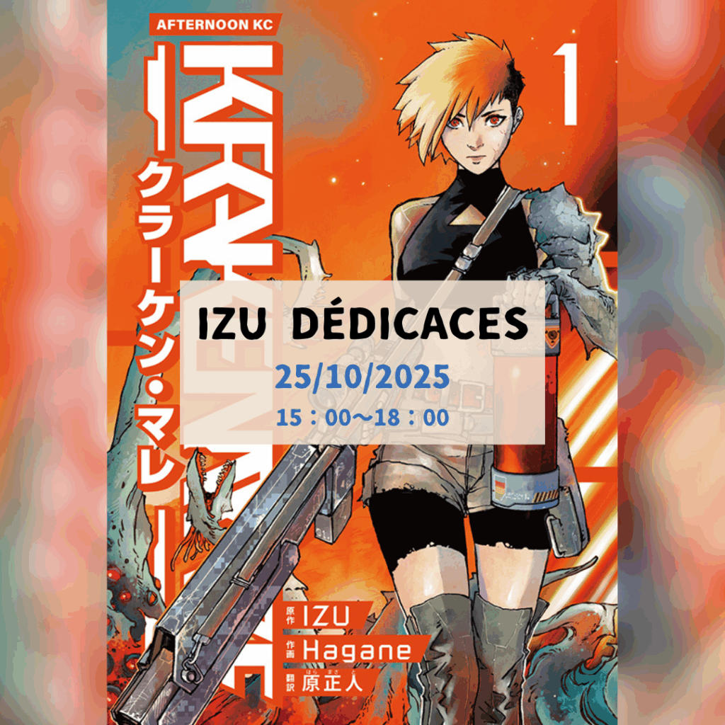 Scénariste français de bande dessinée, de manga et de comics, mais aussi éditeur, vidéaste et créateur éclectique, IZU (Guillaume Dorison) a déjà une longue carrière en France et aux Etats-Unis. Mais c’est la première fois qu’il se lance dans l’aventure de la publication au Japon avec son nouveau manga. Et c’est désormais dans le magazine japonais de prépublication Afternoon, aux côtés des légendes du manga qui l’ont inspiré, qu’il est publié !Son amour des monuments du manga de SF comme Akira, Ghost in the Shell et Blame! s’exprime sans réserve dans l’histoire de Kraken Mare, ambitieux space-opéra à l’intrigue tentaculaire et l’action féroce, mis en image par Hagane (Massimo Dall’Oglio), dessinateur Italien vétéran qu’il connait depuis 20 ans.